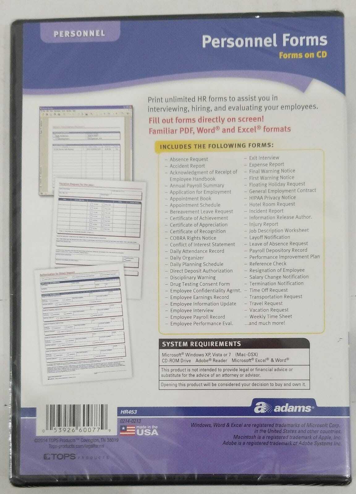 - Adams Employee Personnel Forms CD, Over 250 Human Resource Forms on CD (HR453)