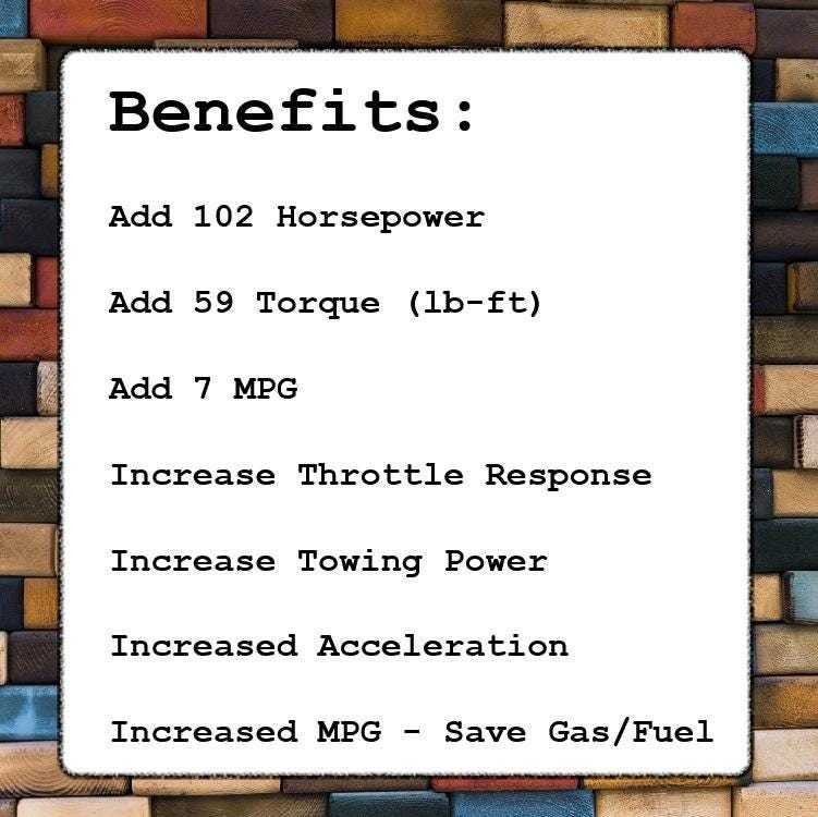 horsepower / mpg / torque output. Rytovik will manage air/fuel ratio, timing, spark and more. Turbo or supercharged vehicles will also see an increase in boost pressure.