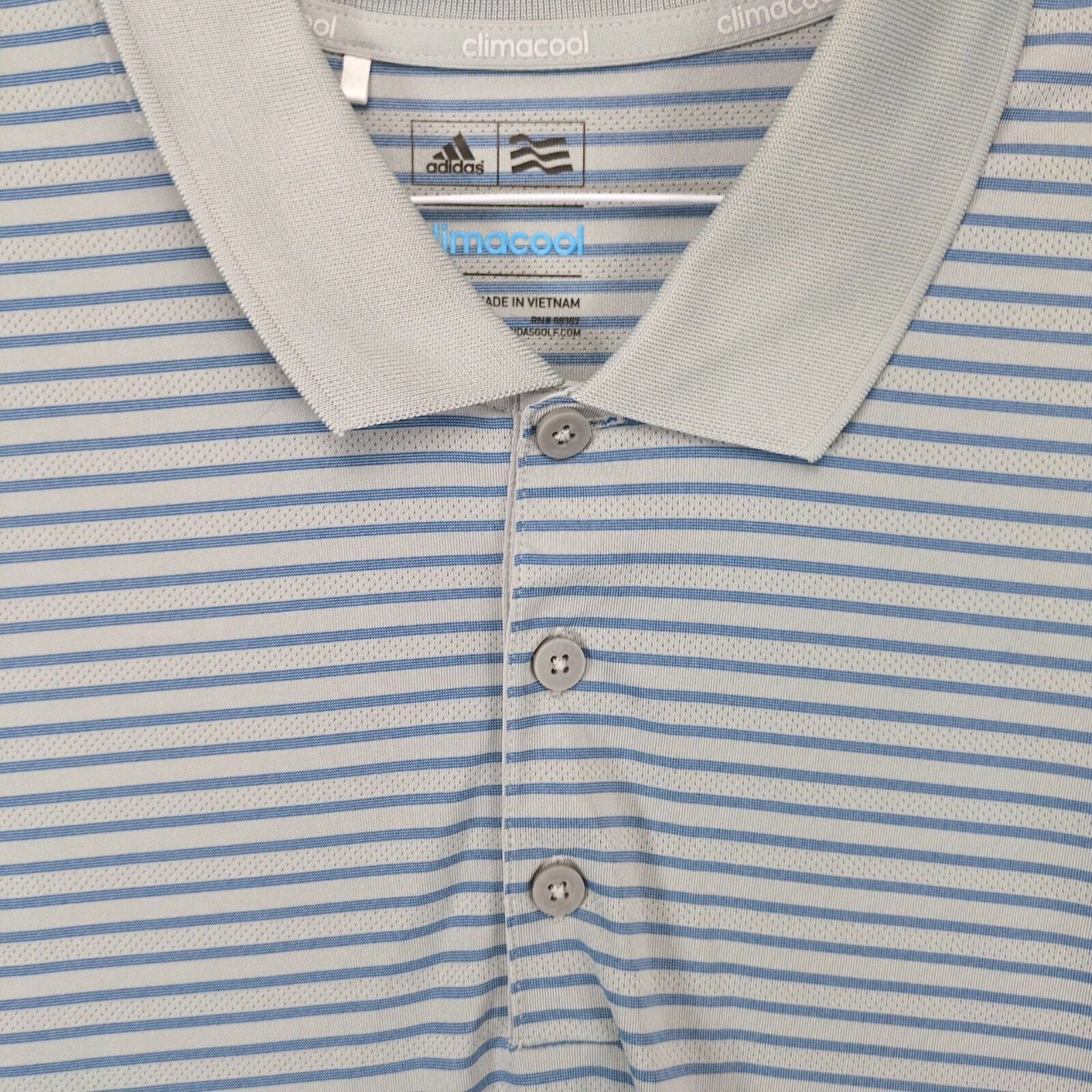- Adidas Golf Men's 2XL Polo Shirt Climacool Gray Blue Striped Breathable Athletic