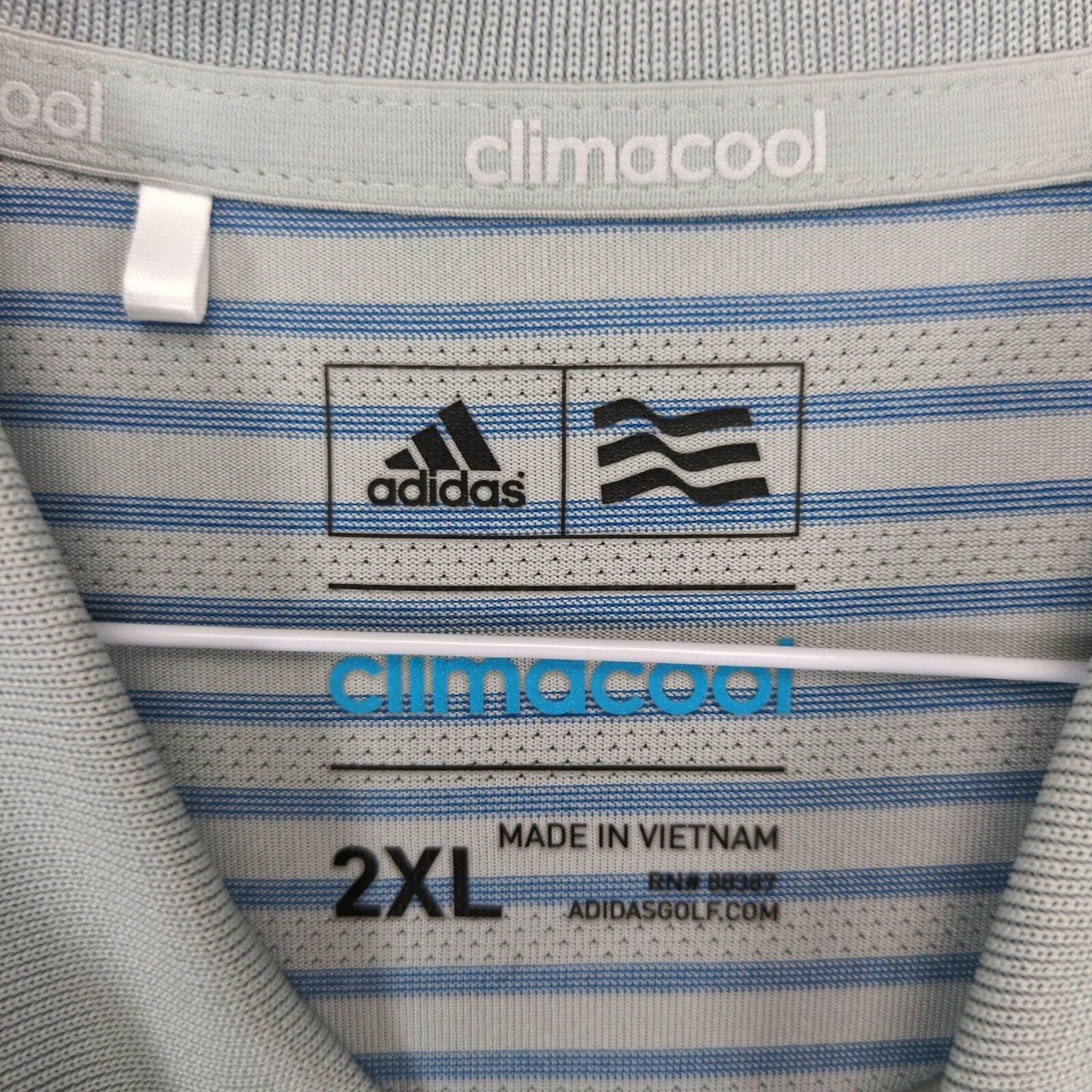 Adidas Golf Men's 2XL Polo Shirt Climacool Gray Blue Striped Breathable Athletic