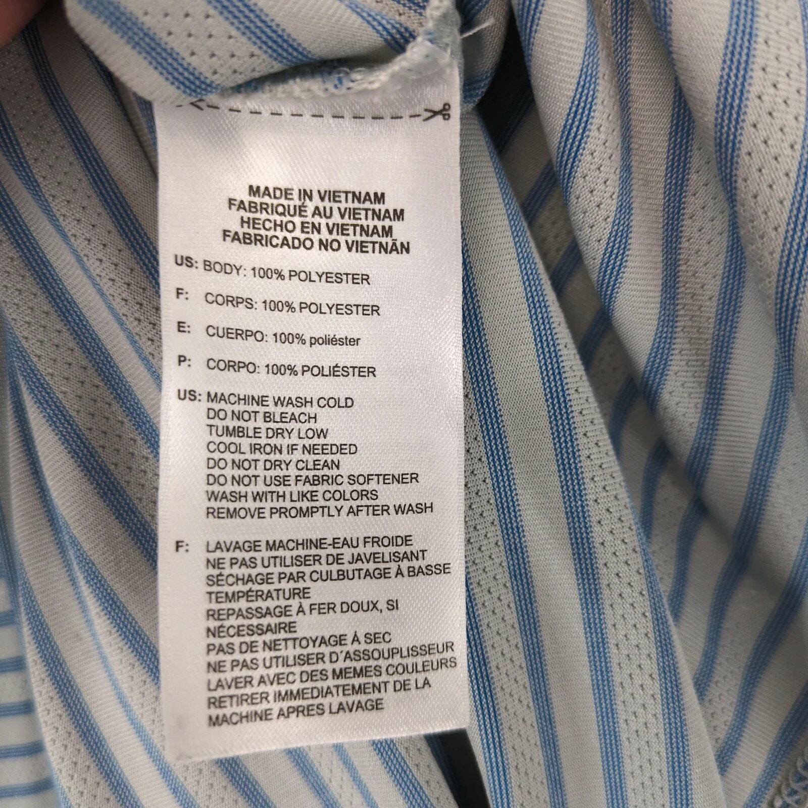 Features: Athletic Fit, Collared, Breathable, Easy Care, Moisture Wicking, Quick Dry, Slit, Stretch, Striped Pattern, Logo, Machine Washable