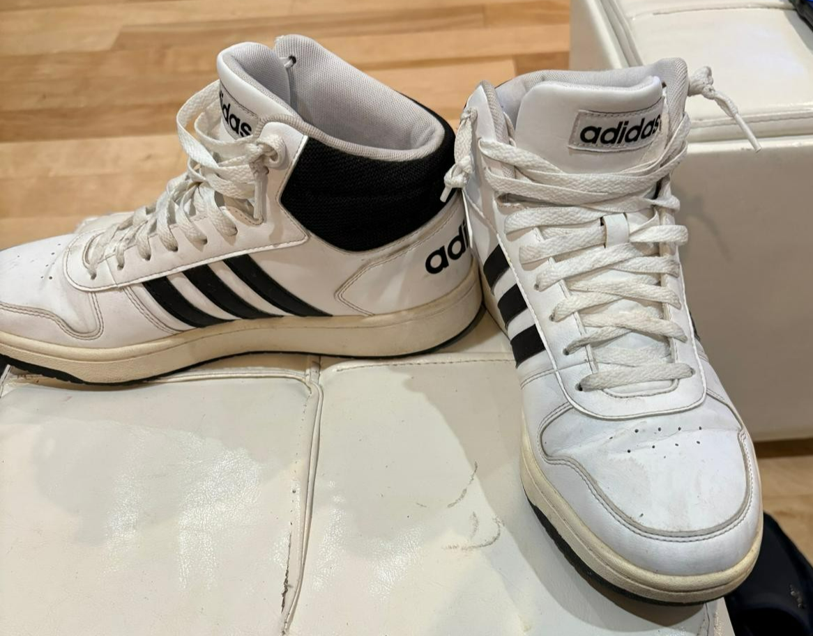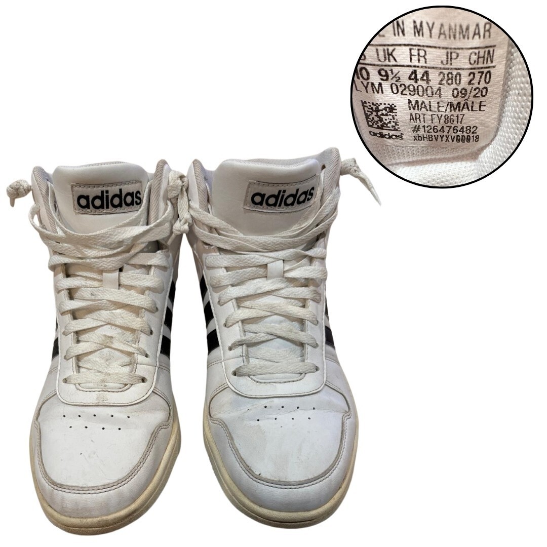 - Adidas Hoops Mid Men’s Size 10 White Black Athletic Sneakers Basketball Shoes