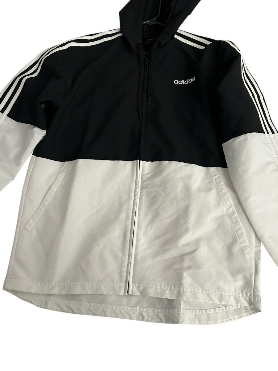 - Adidas Jacket Men M White and Black Three Stripes Sleeve Lightweight Full Zip