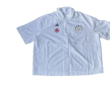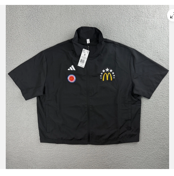 The Adidas McDonald's shirt for men in size small features a black and white color scheme with a mock neck and full zip closure. This limited edition jersey is perfect for various occasions including casual wear, activewear, parties, workwear, and travel. Made of 100% polyester, the shirt is lined, moisture-wicking, and breathable, making it suitable for all seasons. The shirt also includes accents like a zipper pull and the Adidas logo, with a band collar style. Whether you're into sports, hip hop, or modern styles, this shirt is a trendy and comfortable addition to your wardrobe.