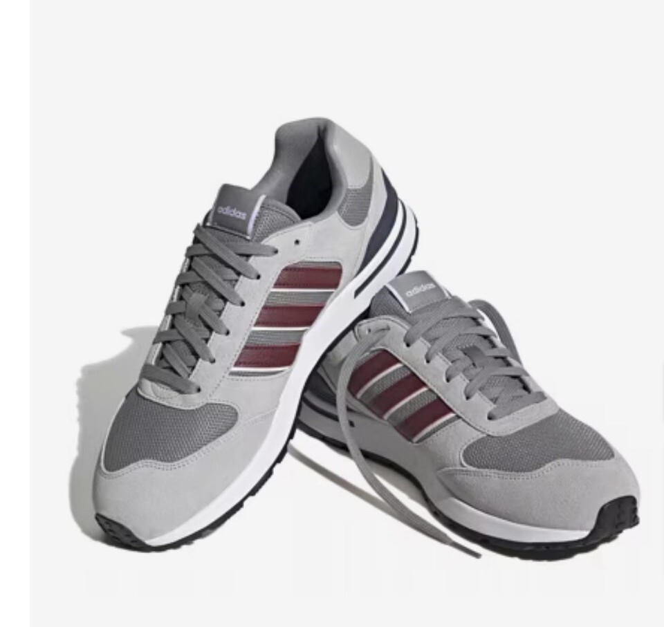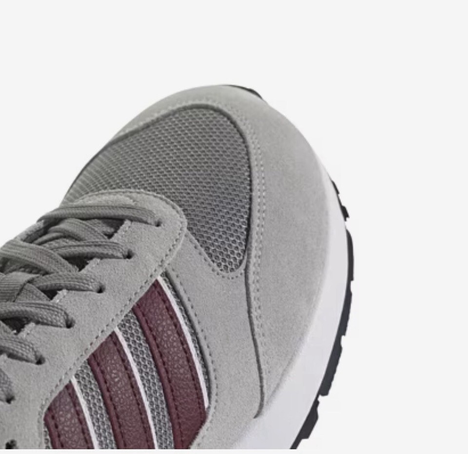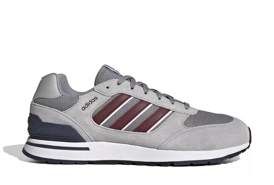 The Adidas Run '80s Sneaker in Men's Size 11 is a stylish and comfortable athletic shoe perfect for running or everyday wear. The shoe features a sleek design with a suede upper material in a shade of grey, complemented by accents of shadow red and navy. With the iconic Adidas branding and a release year of 2023, this sneaker is a modern twist on a classic style, making it a must-have addition to any man's footwear collection.