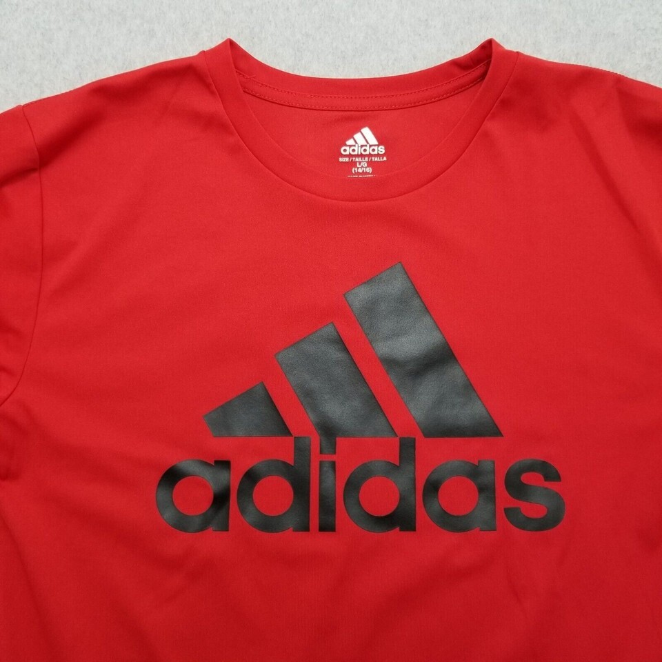 - Adidas Shirt Youth Large Red Short Sleeve Crew Neck Boys Kids Logo