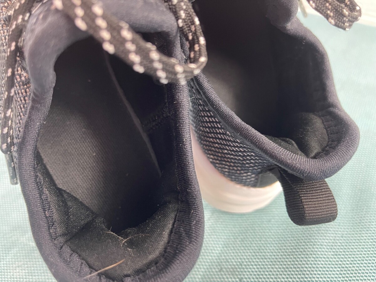 Note : Being a used item, there are signs of prior use on it like a few body abrasions, a little fading, staining, heel wear, some insole/inside body staining/wear and an area of gum on the bottom sole but overall, they are still in really great condition.