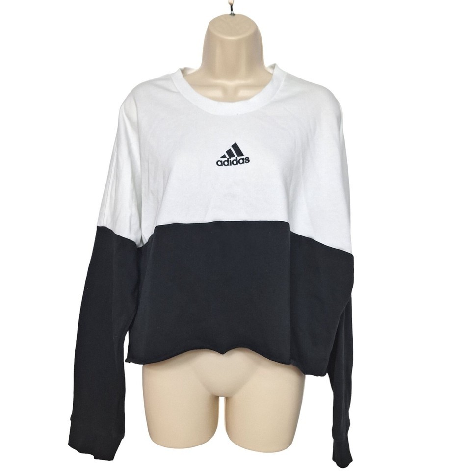 - Adidas Women's Color Clash Crew Sweatshirt Size XL Black White Colorblock
