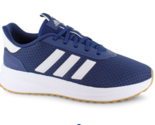 The product is a pair of adidas X_PLR Path sneakers in navy blue with white and gum accents. These men's running training gym shoes are designed with a low top style and standard shoe width, making them suitable for athletic activities.