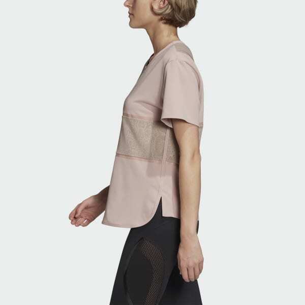 This is a great Stella McCartney x Adidas Loose Tee Running Carrera in Iced Pink. Lace mesh panels on waist and back.