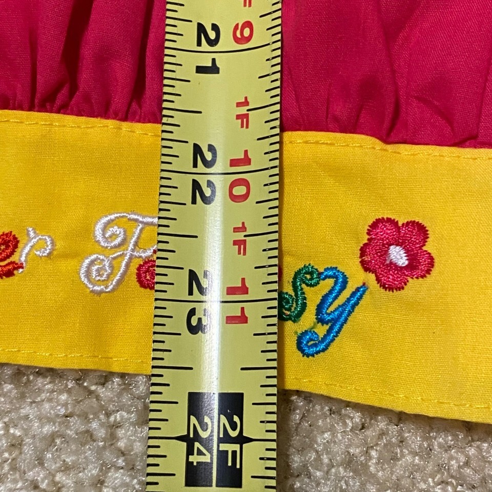 This is adorable for pageants with tall socks for a Spring/Summer outfit, it has a beautiful double collar and 3D flowers. Color embroidered threat "Summer Fantasy" on the front left side.