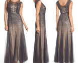 Adrianna Papell Illusion Beaded Chiffon Gown Gunmetal $300 4 Petite