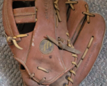 This ball glove is in good used condition. It needs a good oiling. Dusty from storage. The leather closures are in good condition. It measures 13" from finger tip to wrist. It would make a nice addition to a game or collection.