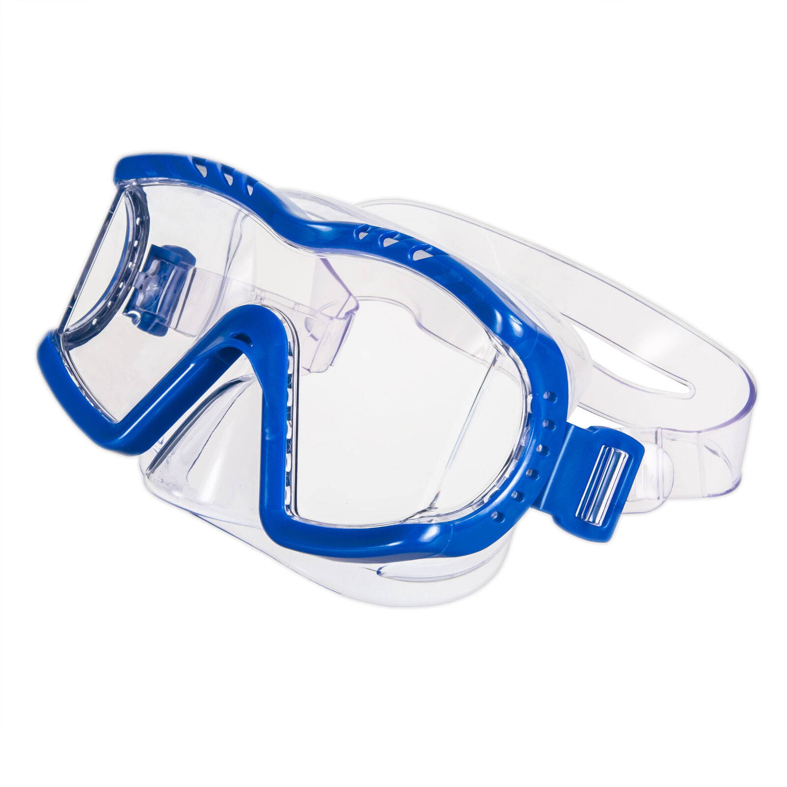 Experience a panoramic view underwater! Adult (12 and up). Performance Swim Mask Superior visibility. Tri-view lens provides a panoramic view. Great for underwater exploring. Comfortable. Soft facial skirt and adjustable split strap keep the mask in place. Keeps water out. Adjustable ratcheting strap supports a secure, snug fit. Safe and durable. Impact-resistant, polycarbonate lenses. No skin irritation. Latex-free swim mask. Key Features: Tri-view Lens, Ratcheting strap, Polycarbonate lenses, Latex Free