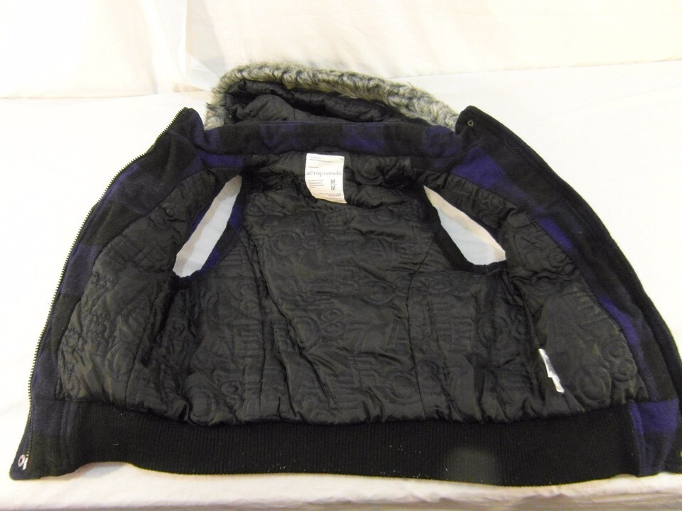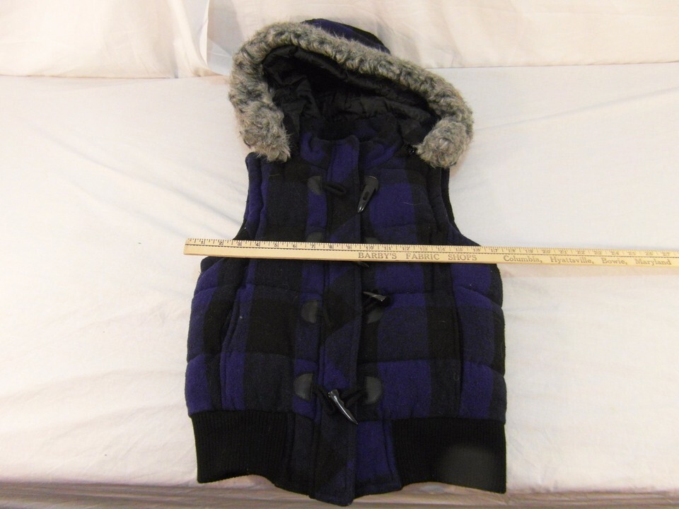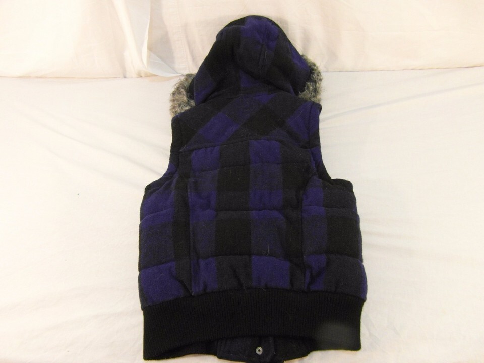 - Adult Women's Aéropostale Full Zipper Blue Black Plaid Zip On Hood Vest 30797