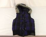 Adult Women's Aéropostale Full Zipper Blue Black Plaid Zip On Hood Vest 30797