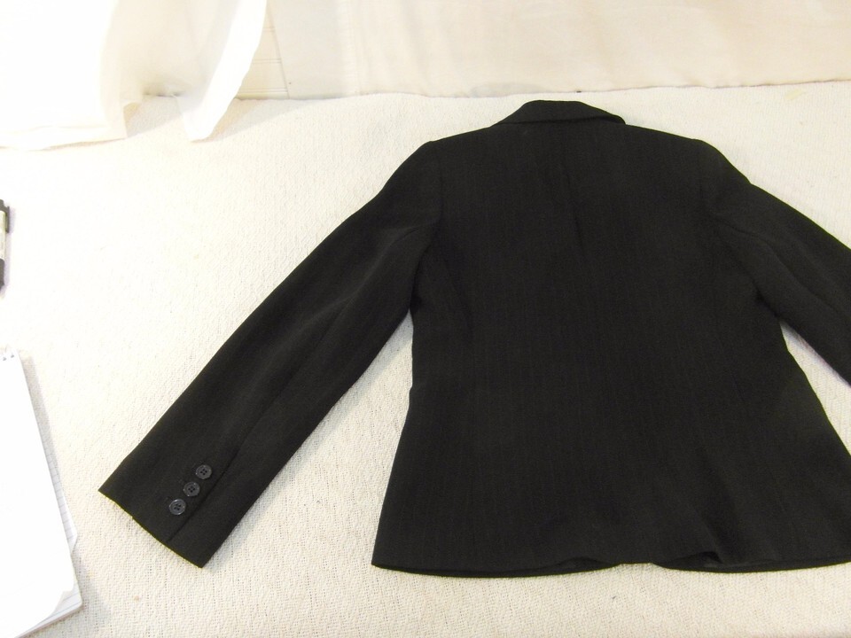 - Adult Women's Ann Taylor Black Red Striped 8 Petite 2 Button Work Blazer 33980