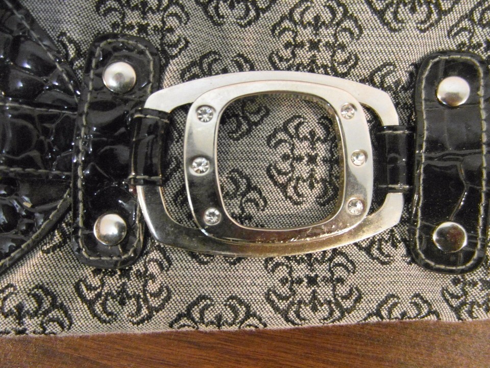 - Adult Women's Gray Black Shoulder Bag Purse Faux Leather Metal Buckle 32974