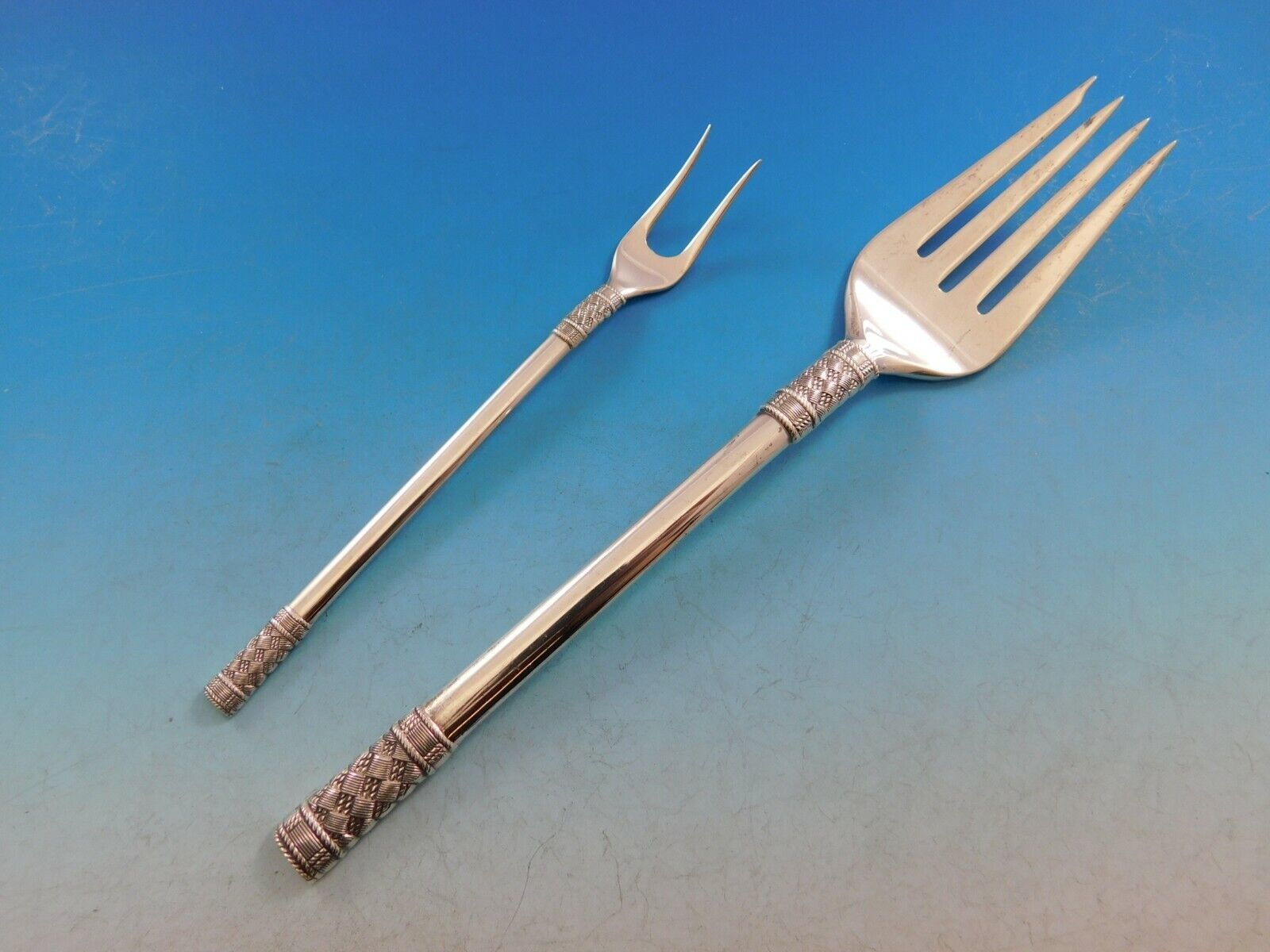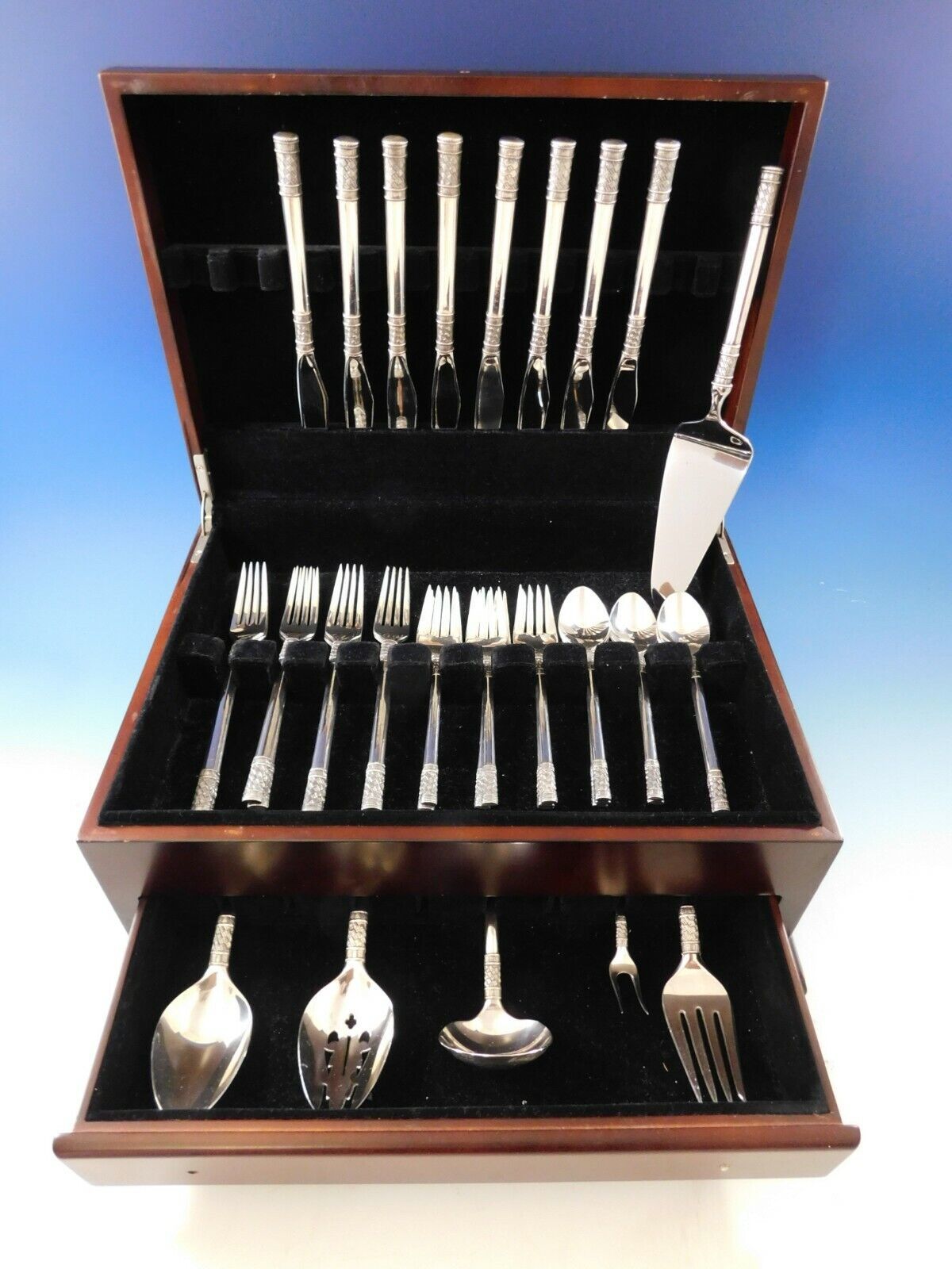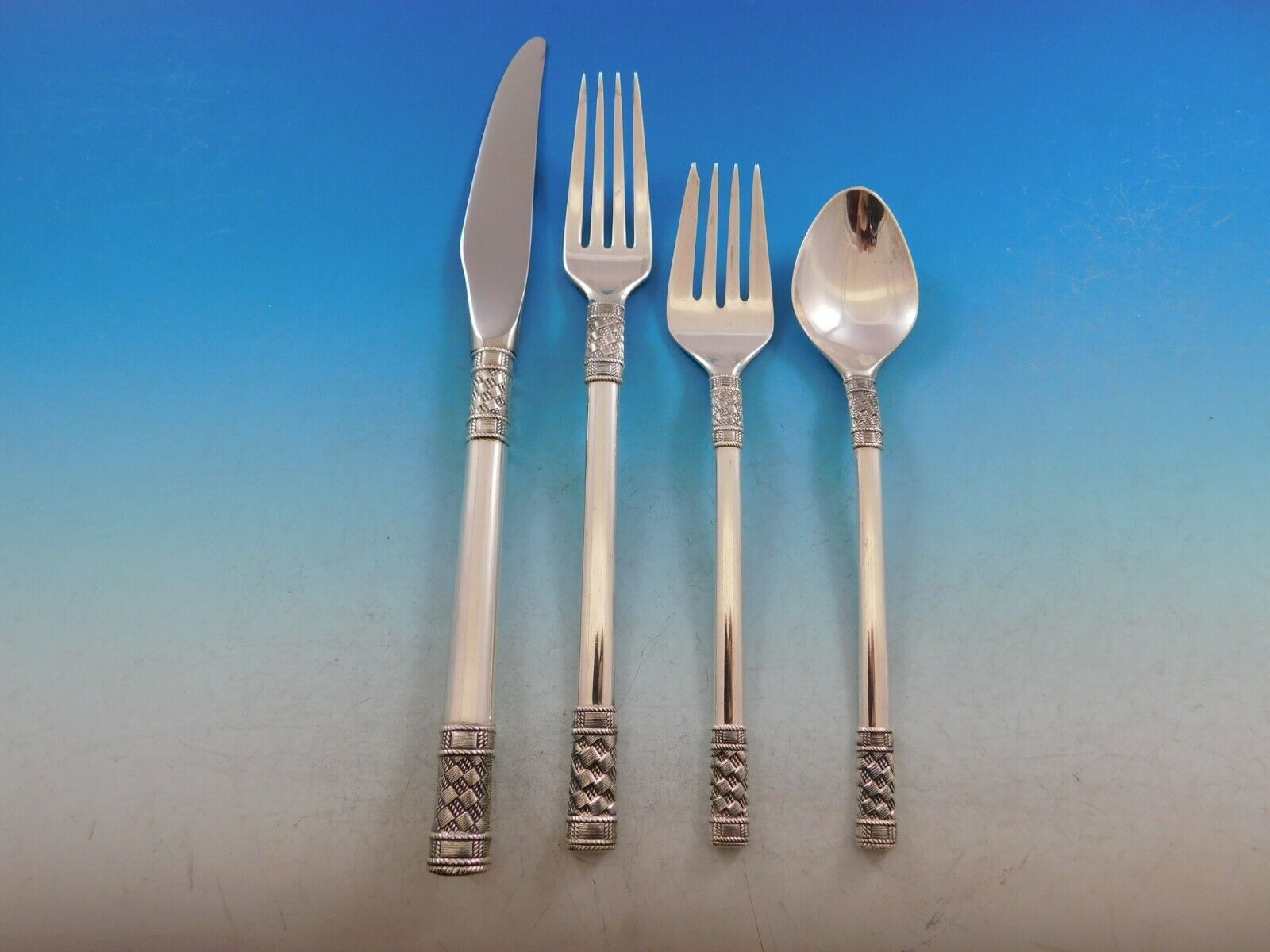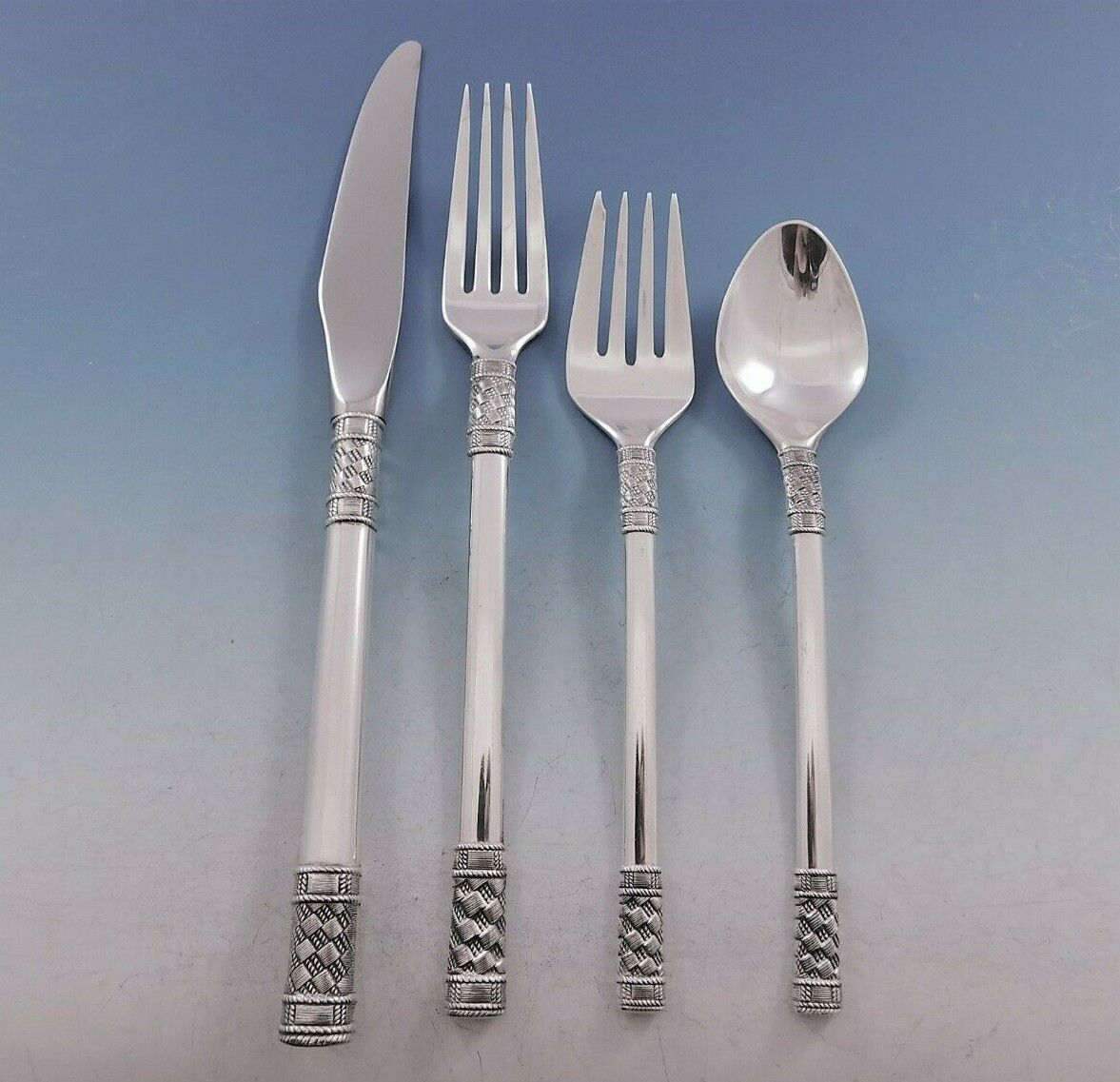 Aegean Weave Plain by Wallace sterling silver Flatware set, 38 pieces. This set includes: