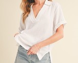 - Aemi + Co Side Slit Johnny Collar Short Sleeve Cotton Gauze Blouse
