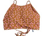 Aerie High Neck Bikini Top Size L Tan Pink Ditsy Floral Strappy Beach NWOT