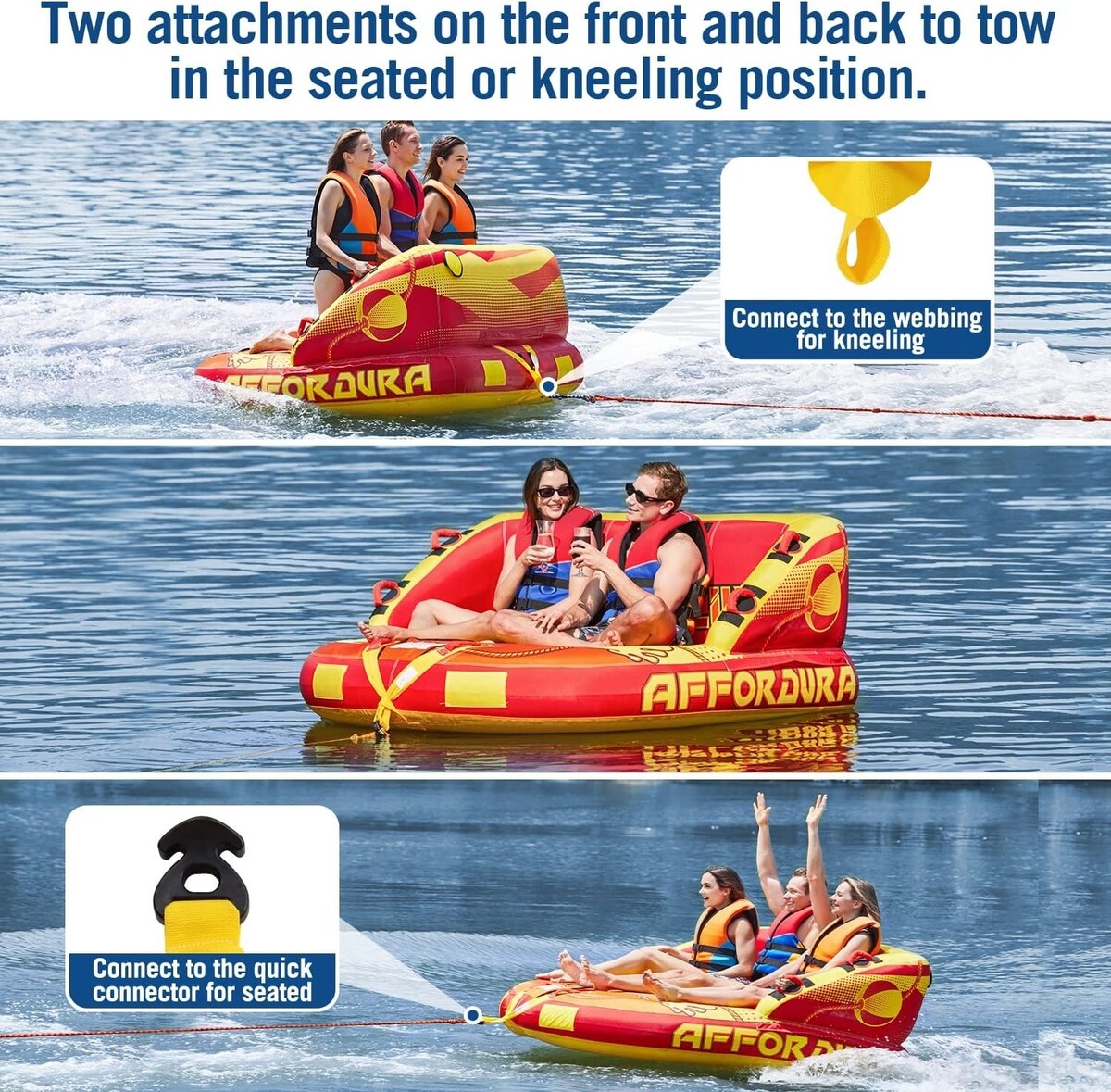 - Affordura Towable Tube for Boating 3 Person for Boat Pulling Water Fun w/ Bag