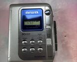 The Aiwa TX427 AM/FM TV Weather Radio Cassette Player is a portable audio device that combines the functionalities of a radio, cassette player, and TV weather information. With its sleek silver design and AM/FM radio capabilities, this Aiwa model from the Walkman product line offers a convenient way to listen to your favorite radio stations and cassette tapes on the go. Whether you're looking to enjoy some music while on a hike or stay informed about the weather, this Aiwa device is a versatile option for personal audio playback. The radio works, but the tape player does not.