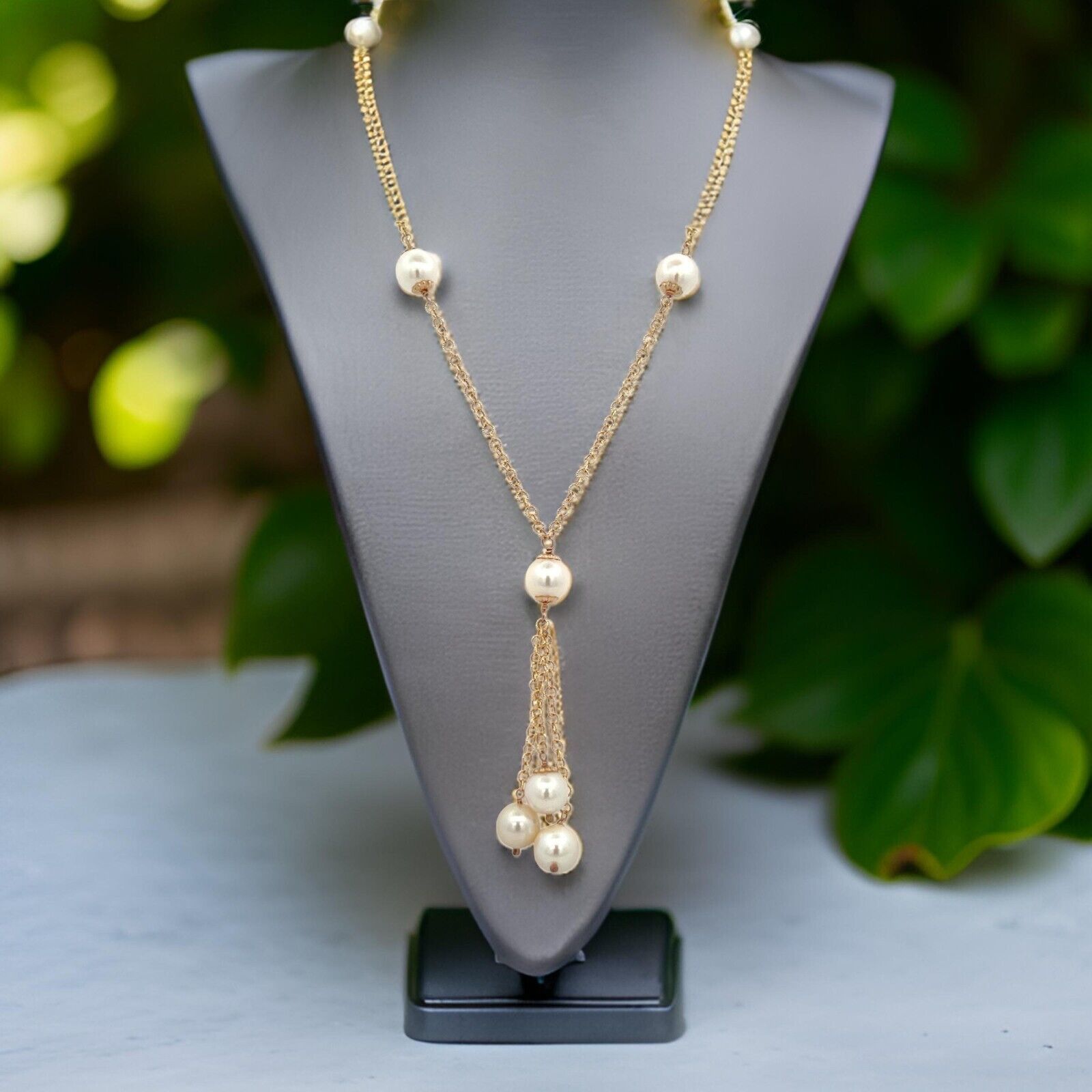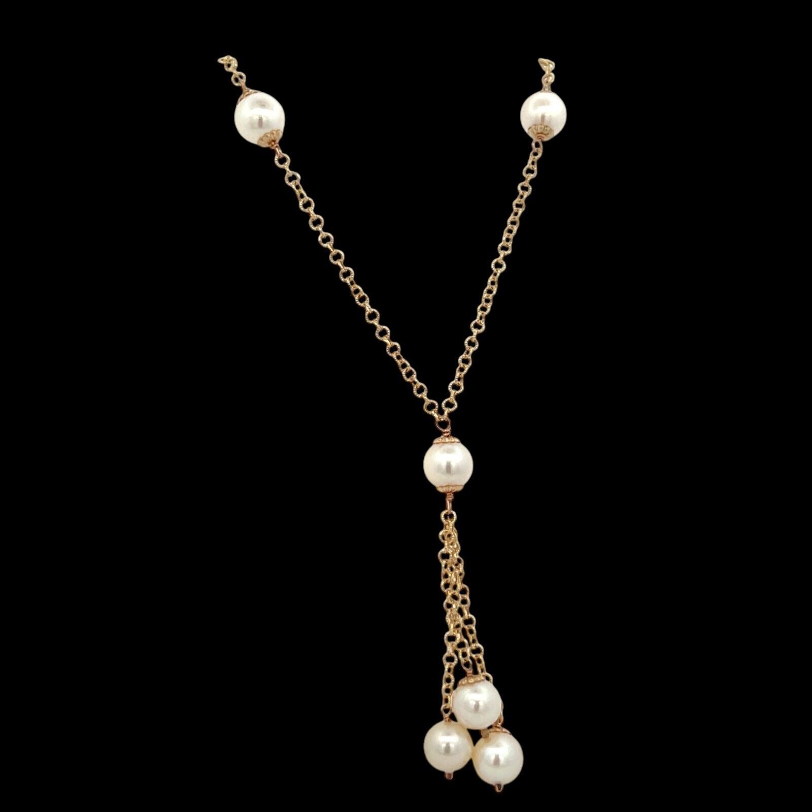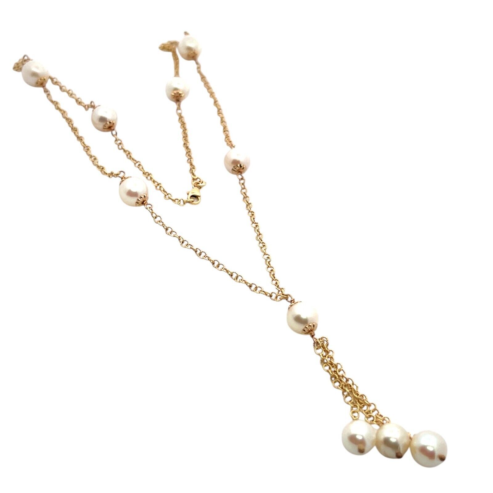 The pearls are evenly spaced along an 18-inch chain crafted in 14-karat yellow gold, creating a classic yet modern design that flatters any neckline.