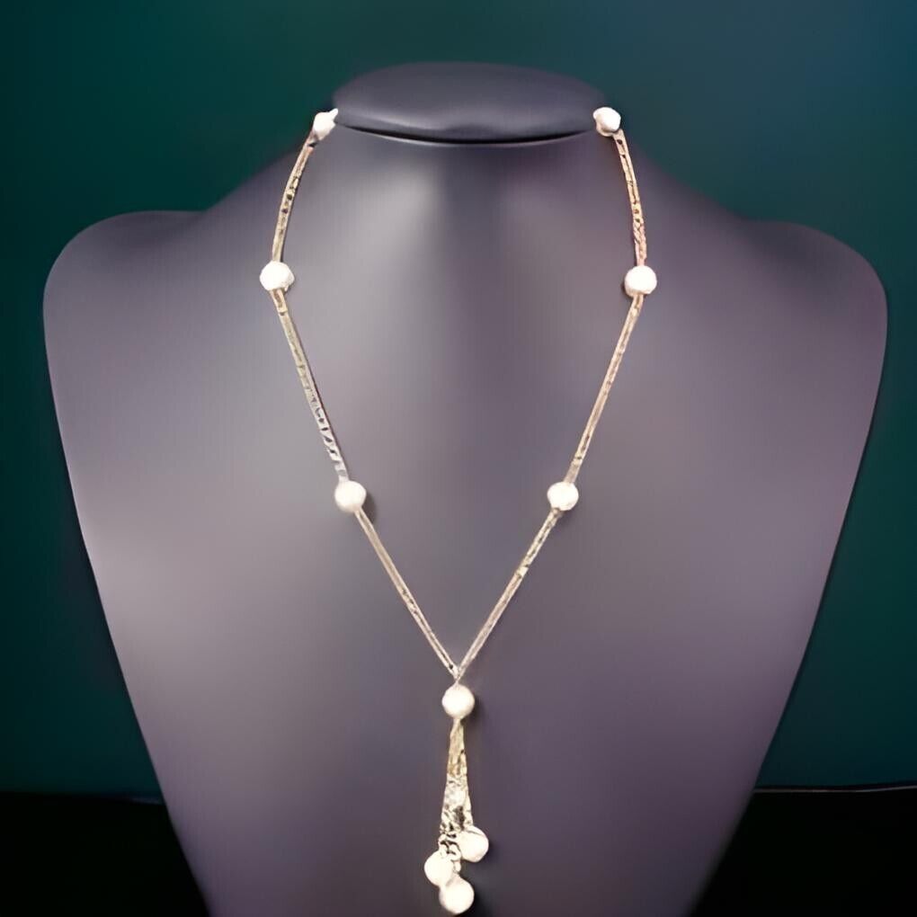 This authentic Japanese Akoya pearl Tin-Cup necklace is a timeless and elegant piece, perfect for adding a touch of sophistication to any outfit.