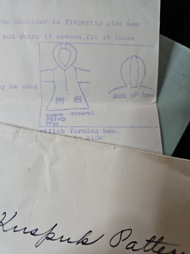 A Handmade and drawn out pattern on blue tissue style paper--never used--can be made into multiple different sizes. Along with the Ditto Copied Instruction sheet on how to sew it up. Al from