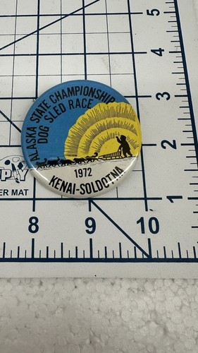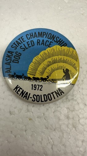 - Alaska State Championship Dog Sled Race Pin Back Lanai Solitons 1972 VTG