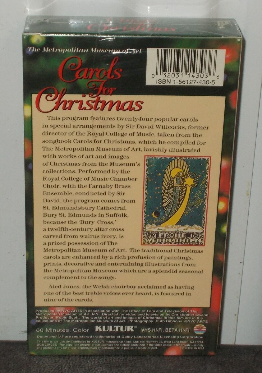 - Aled Jones Carols for Christmas VHS Sealed Metropolitan Museum Art Willcocks HTF