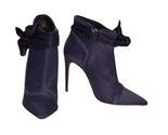 - Alexandre Birman Blue Satin Pointed Toe Zip Ankle Booties Shoes size 40 w. Bow