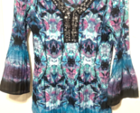 Alfani Artists Pattern Jewel Neckline 10 Bell Sleeves Floral Bursts Shirt Blouse