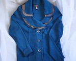 Alfani Dark Teal Blue 100% Merino Wool Ruffle Collar Cardigan Sweater Med EUC