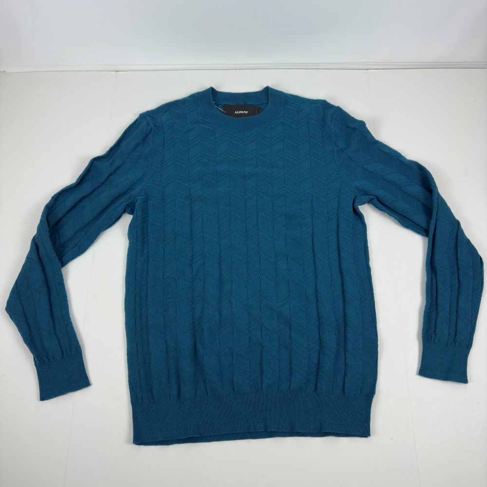 - Alfani Men's Textured Chevron Long-Sleeve Crewneck Sweater, Blue Gem-XL