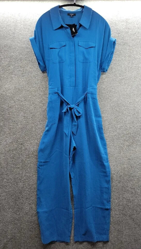 - Alfani Tie-Waist Plus Size Jumpsuit Baroque Teal Women's 3X Short sleeve Collar
