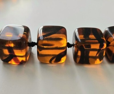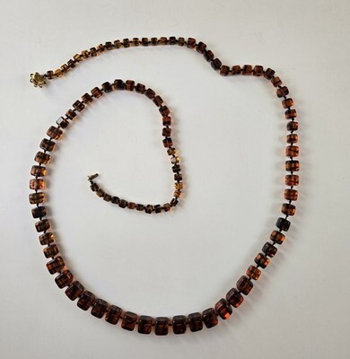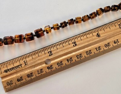 - Alice Caviness Tortoiseshell Necklace, Cube Art Glass 42" Knotted, Single Strand