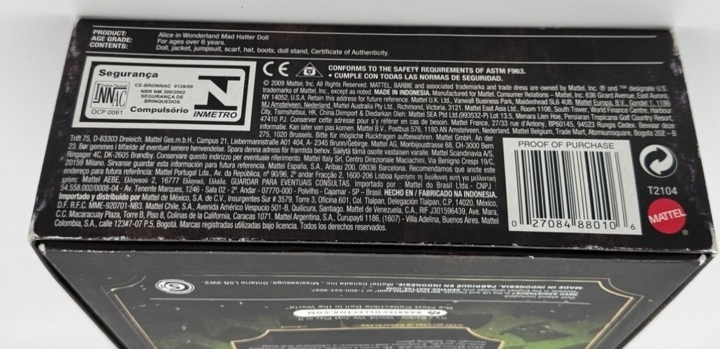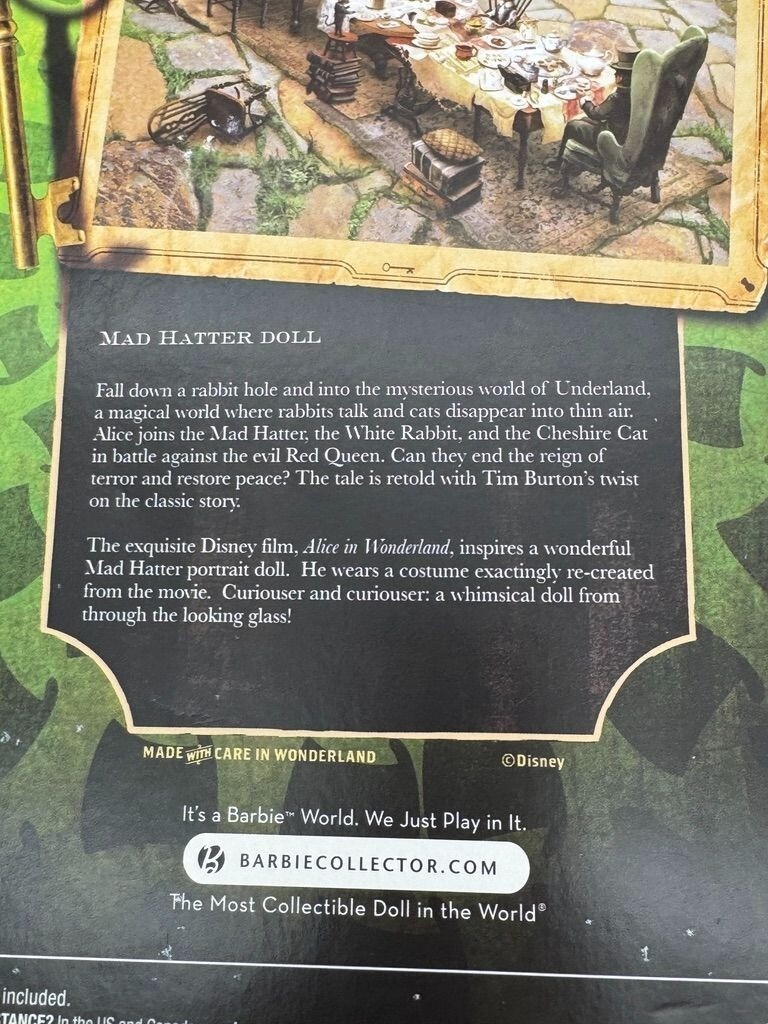 - Alice in Wonderland Barbie Collector Mad Hatter Doll Johnny Depp Mattel 2009