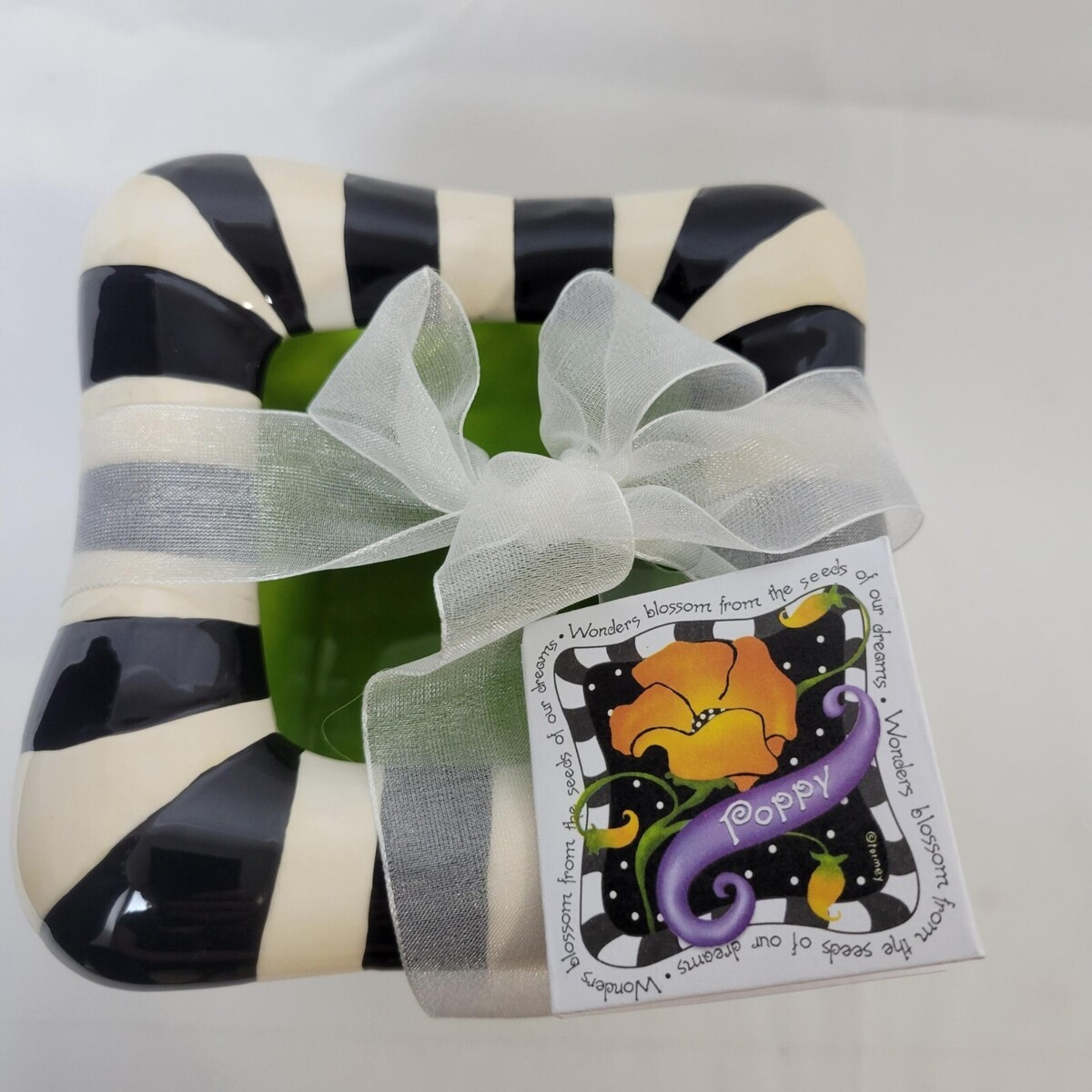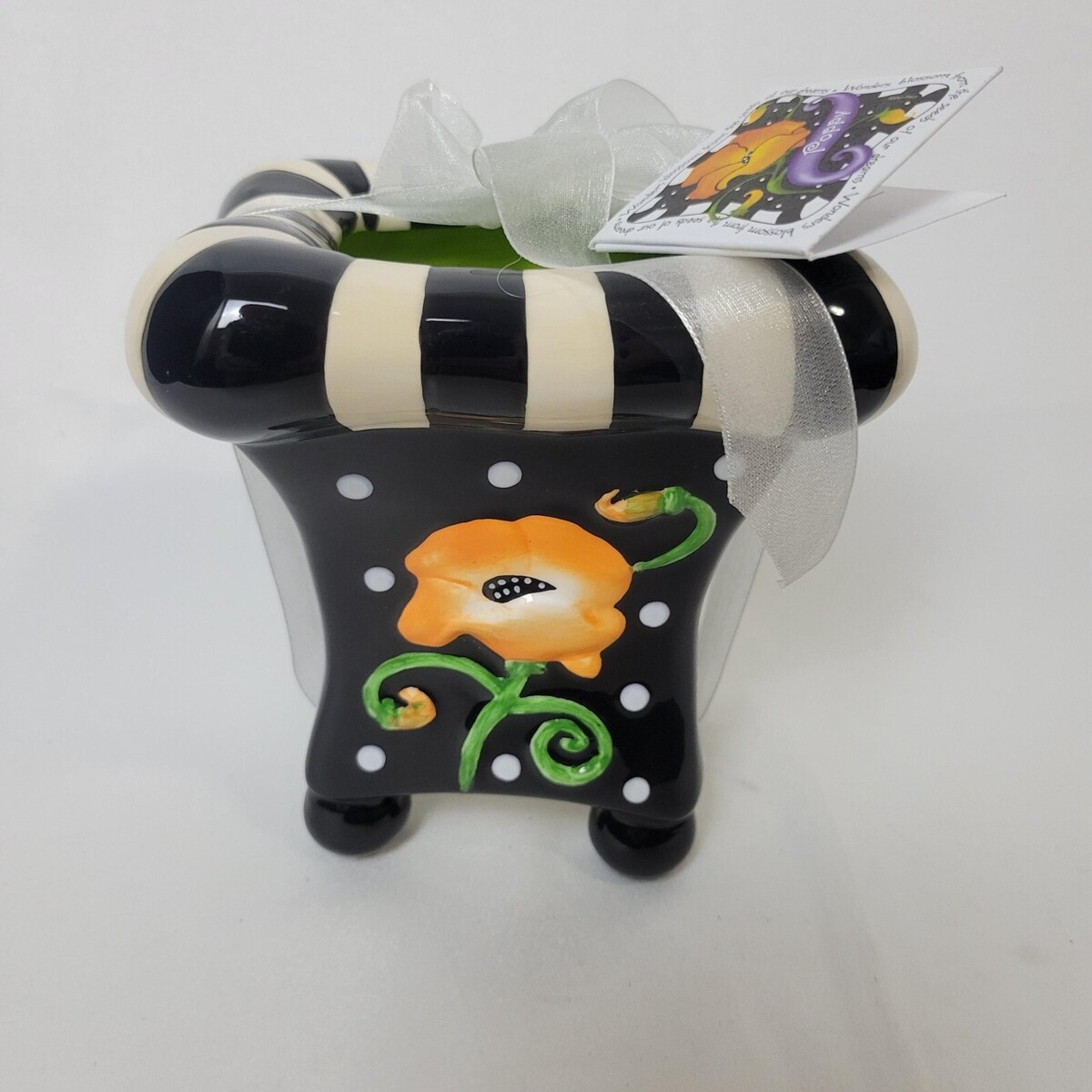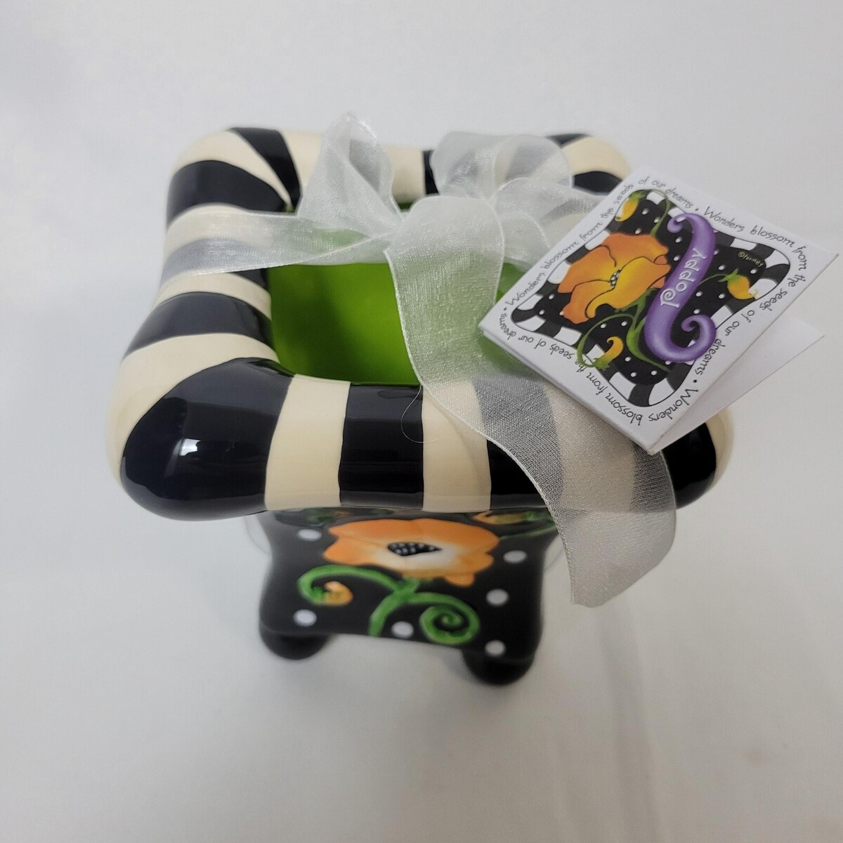 - Alicia Tourney Designs Ceramic Whimsical Stripped Flower Footed Vase Pot Poppy