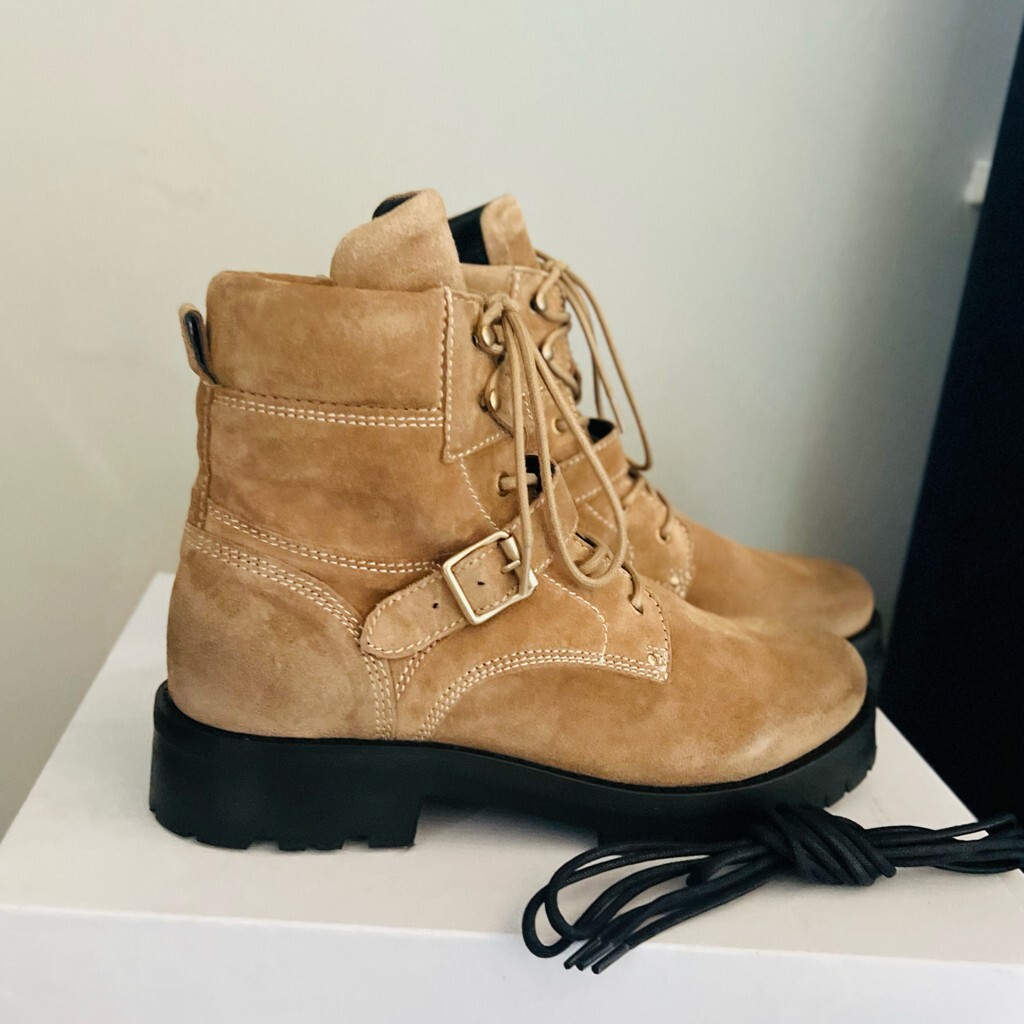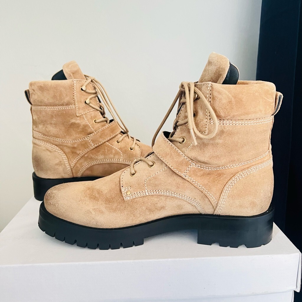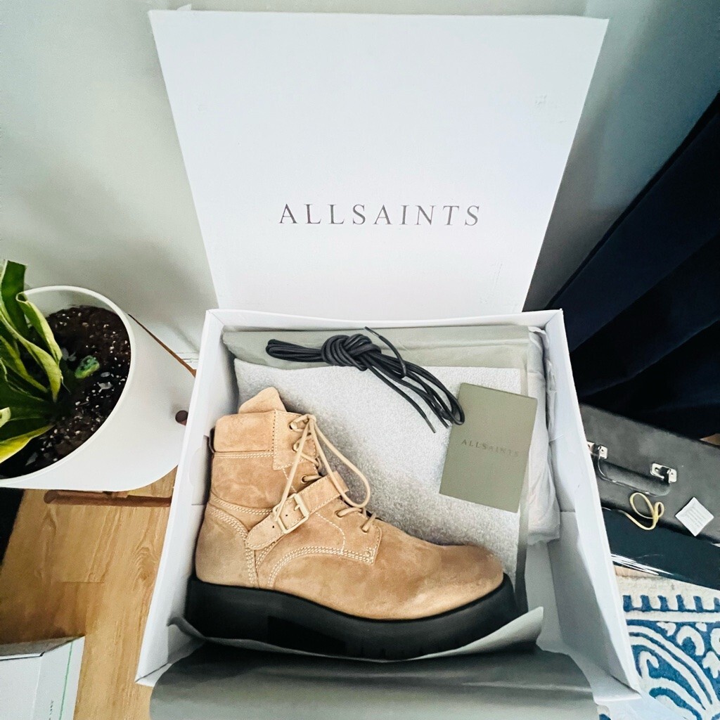 - All Saints Paulina Suede Leather Buckle Moto Boot, Size 11, Brown/Tan, NWT