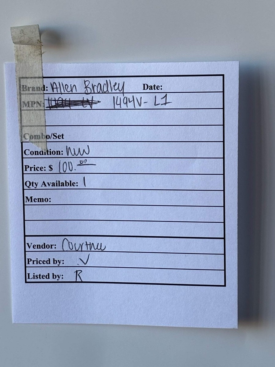 Allen Bradley 1494V-L1 Door hardware Kit Right Hand Top w/ Side Latching New - Same Day Ship The Allen-Bradley 1494V-L1 is a comprehensive door hardware kit designed for NEMA Type 12 enclosures with a height of less than 40 inches. It features a right-hand top mounting configuration and side latching mechanism, ensuring secure closure and reliable operation. Listed by: Richard (Sales Team) ?our journey that lies ahead becomes impossible if we never begin? -RRW (A positive moment brought to you by Help Resale) About Us Welcome to Help Resale, your go-to consignment shop where value meets quality. At Help Resale, we're dedicated to providing you with an exceptional shopping experience, whether you're looking to find the best deals or consign your items. Need to buy a product, but don't see it in our store? Please feel free to reach out to us and we will help you find it! Help Resale 7200 Fair Oaks Blvd Suite 120 Carmichael CA 95608 Business Hours: Monday-Friday: 9:00 am to 5:00 pm (PST) All product and company names are trademarks TM or registered trademarks of their respective holders. Use of them does not imply any affiliation with or endorsement by them.