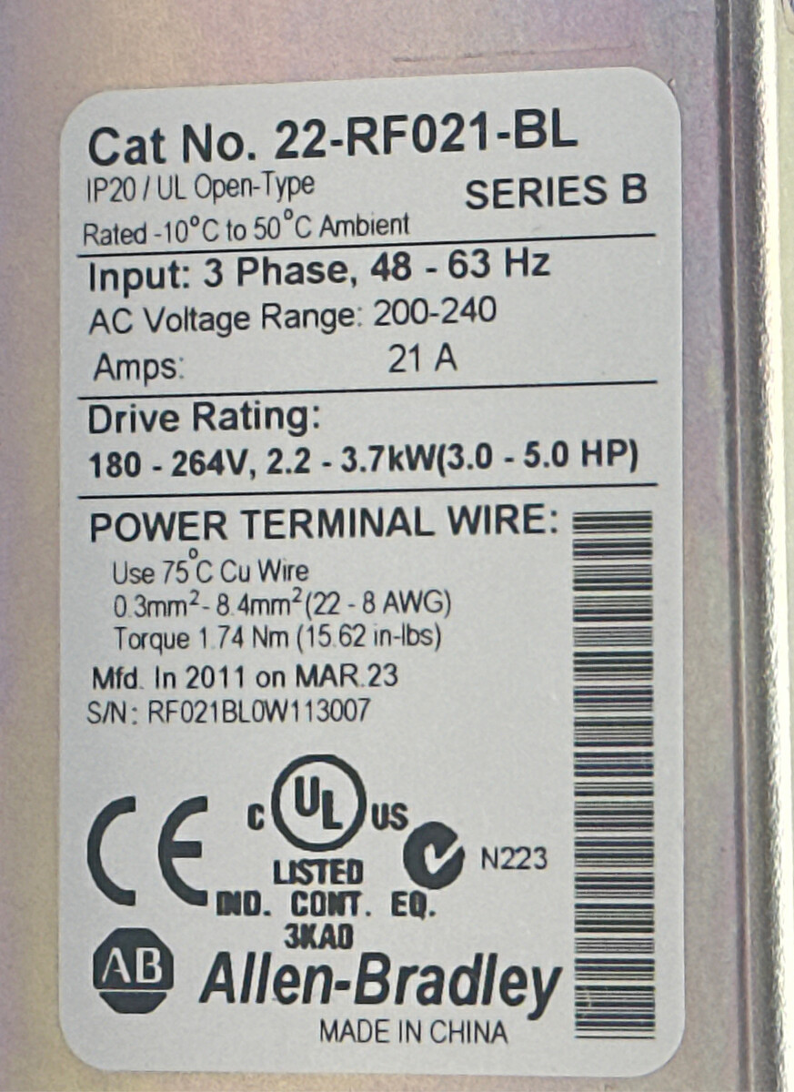 - Allen-Bradley 22-RF021-BL Powerflex 4 Class Line Filter