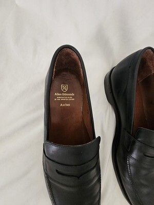 - ALLEN EDMONDS ASCHER Black Leather Penny Loafer Slip On Shoes Size 12