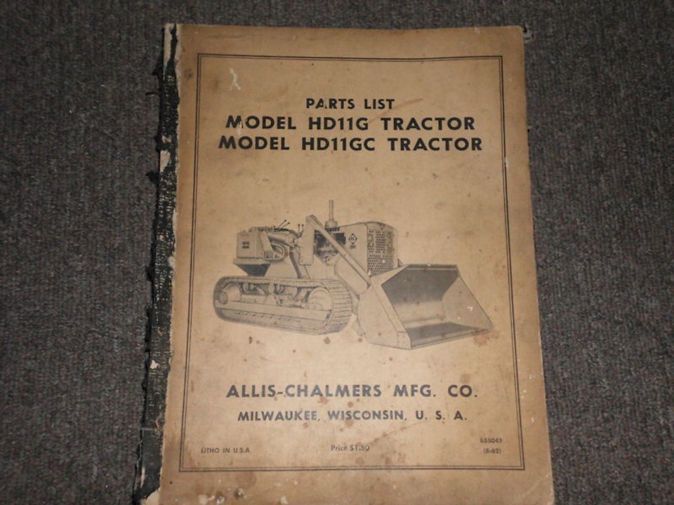 Catalogue de pieces de tracteur Allis Chalmers modele HD11G HD11GC d'occasion. Des tonnes d'informations, illustrations, Diagrammes, images, tout couvre, pas de pages manquantes. aux Etats-Unis en bas 48 et comprend Confirmation de livraison / assurance. rencontre. Ce manuel est publie par Caterpillar. Suivre les pages vues avec Le comptoir gratuit d'Auciva
