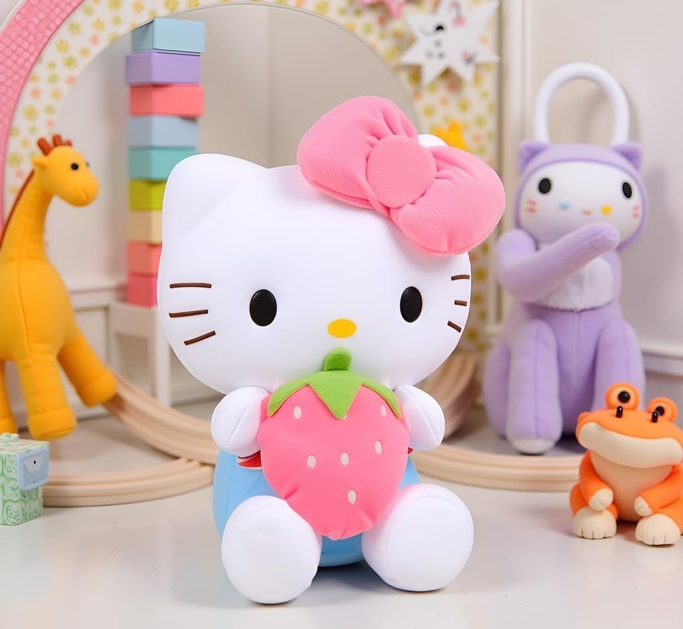 ADORABLE KAWAII DESIGN Meet your new favorite plush companion! This extra-cute pink kitty features a sweet expression and a red strawberry detail a must-have for Kawaii fans, kids, teens, and collectors.