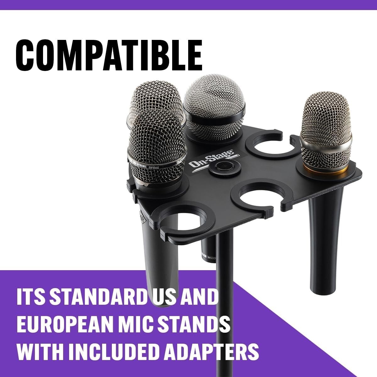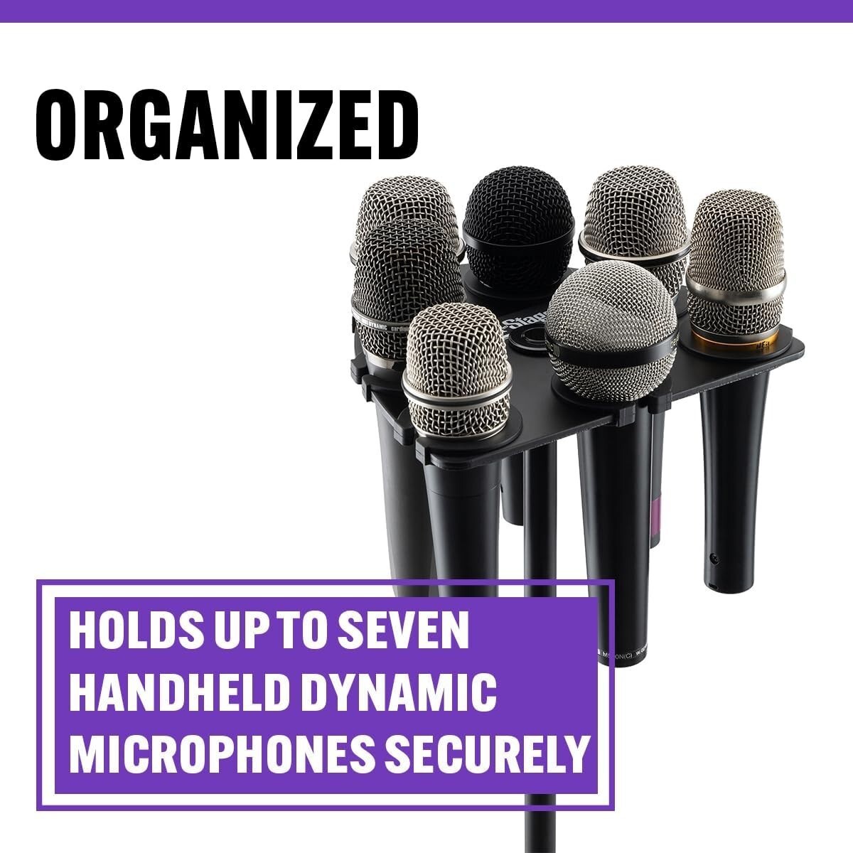 - Aluminum Microphone Holder with Silicone, Supports 7 Dynamic Mics Securely