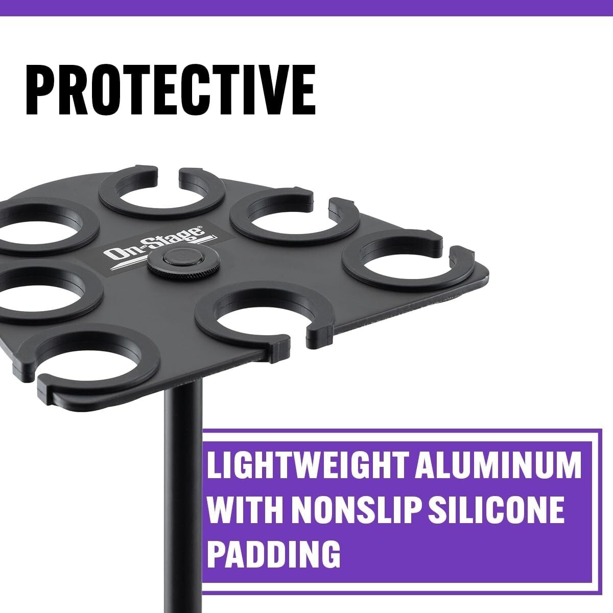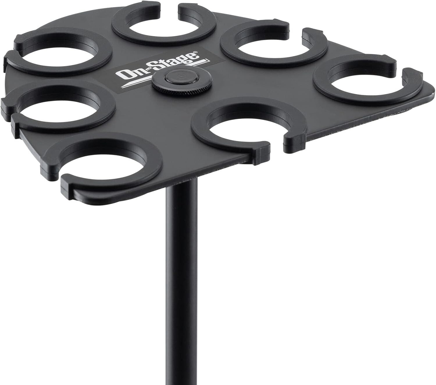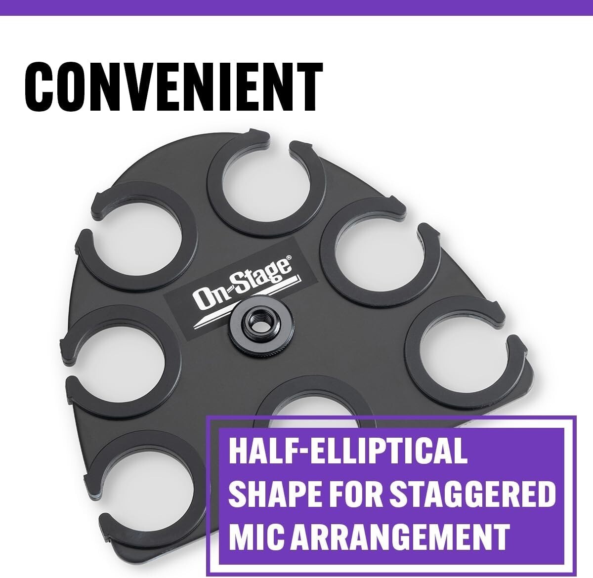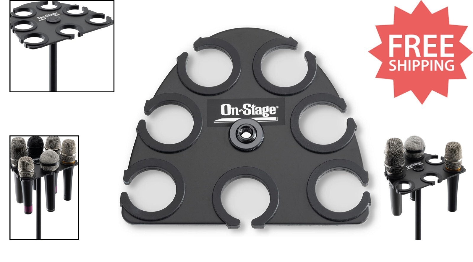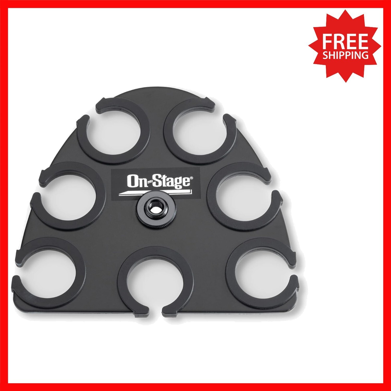 Keep your microphone collection organized, protected, and easily accessible with our Multi-Mic Holder. Crafted from lightweight, durable black powder-coated aluminum, it securely mounts to standard mic stands via a 5/8"-27 threaded socket with an included 3/8"-16 adapter. Its half-elliptical, staggered design accommodates up to seven handheld dynamic mics?wired or wireless?each protected by nonslip silicone padding that prevents scratches and ensures a secure fit. The professional-looking black finish resists chips and scratches, making it perfect for stage or studio use. To ensure fast and reliable delivery, we work with multiple fulfillment partners and suppliers. Depending on availability and location, your order may ship from different warehouses or arrive in packaging that varies from item to item. Tracking details are typically provided shortly after shipment, and customer satisfaction remains our top priority. Please note that due to carrier policies and regional regulations, certain items may not be eligible for delivery to specific states or territories.