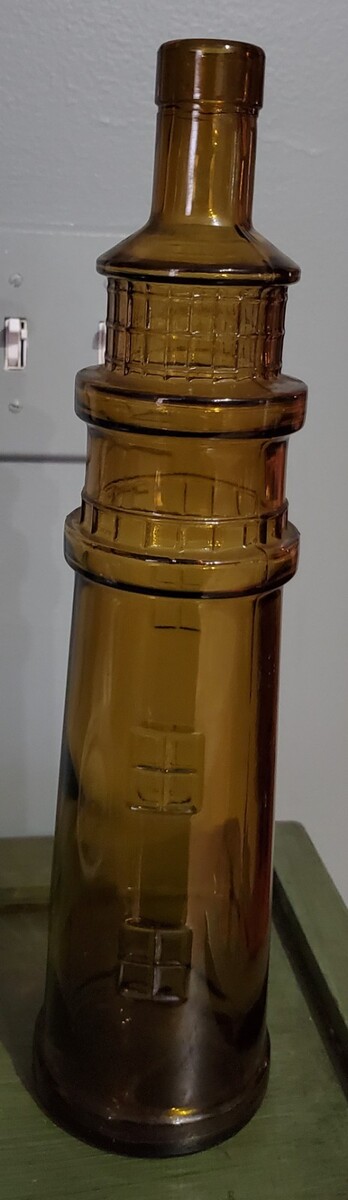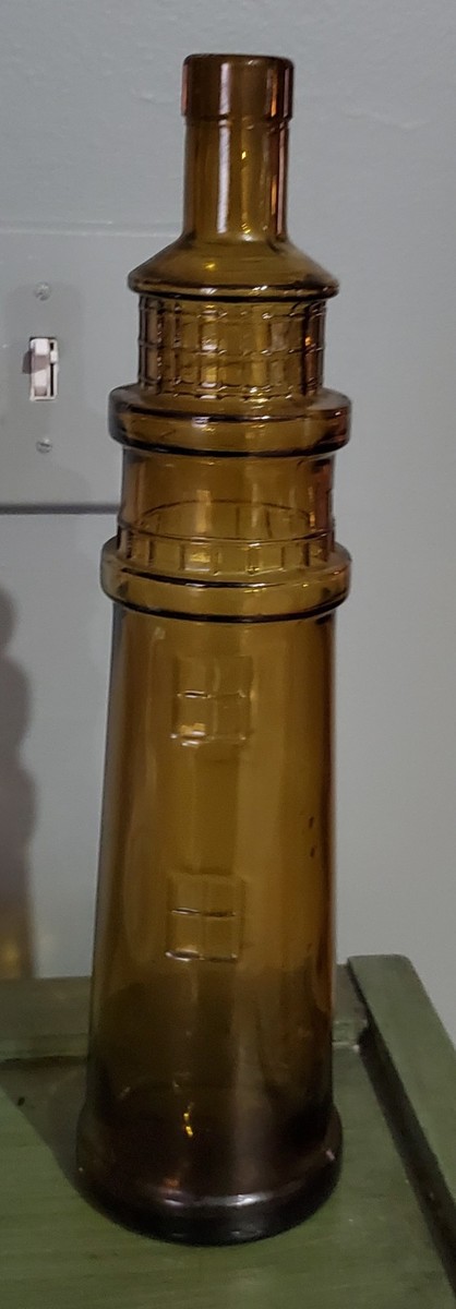 - Amber Glass Lighthouse Wine Bottle Cape Cod Beach Decor Bar Vase 13"