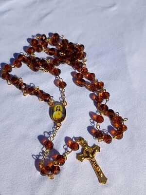 - Amber Mercy – Brown Crystal Rosary w/ Gold Crucifix & Sacred Heart A64